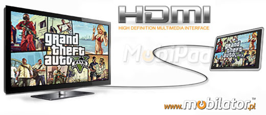 Tablet zosta³ stworzony do obs³ugi multimediów. Teraz filmy w jako¶ci full HD nie s± problemem, wystarczy skorzystaæ ze z³±cza mini HDMI i zrzuciæ obraz ze swojego nowego urz±dzenia na telewizor i ju¿ mo¿na cieszyæ siê doskona³± jako¶ci± obrazu i d¼wiêku, bez ¿adnych kompromisów i to w dobrej jako¶ci. Nasz najnowszy tablet zosta³ wyposa¿ony w nowoczesne z³±cze HDMI 1.3. Dziêki zastosowaniu tego typu rozwi±zania bêd± mogli Pañstwo u¿ywaæ tego urz±dzenia jako pe³nowarto¶ciowy odtwarzacz filmów w jako¶ci HD. Wystarczy tylko pod³±czyæ tablet do telewizora za pomoc± przewodu HDMI i cieszyæ siê z seansu filmowego w kinowej jako¶ci Full HD.