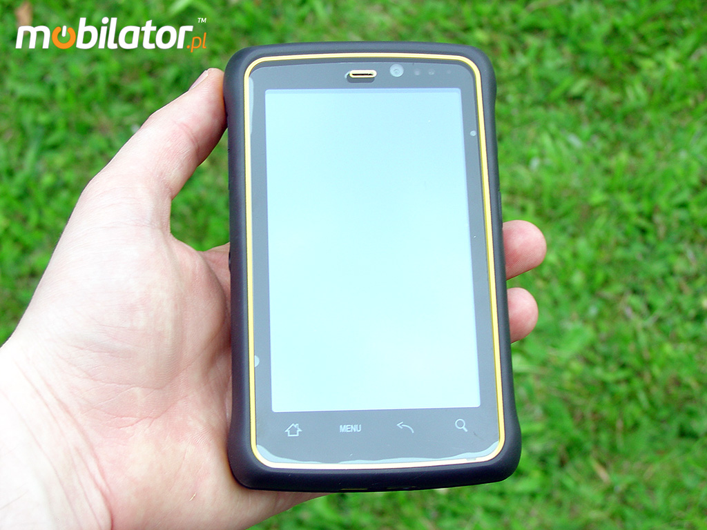Ten niewielkich rozmiarów PDA zadziała tam, gdzie inny sprzęt dawno odmówiłby posłuszeństwa. Dzięki szczelnej obudowie oraz gumowym narożnikom, urządzenie jest odporne na uszkodzenia mechaniczne, brud, kurz czy wilgoć i potrafi pracować w temperaturach od -30 do 60 stopni Celsjusza. Stopień ochrony określony został przez normę MIL-810G | MIL-810F.