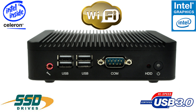 Zintegrowana karta sieciowa - Intel RTL8111E Lan (opcjonalnie moduł WiFi) umożliwiaja podłączenie urządzenia do sieci. Komputer wyposażony jest w: dwa złącza LAN, jeden port COM(RS232), jedno wyjście VGA, trzy porty USB 2.0, jeden port USB 3.0, jedno wyjście HDMI, jedno wejście Audio, jedno wejście mikrofonowe.