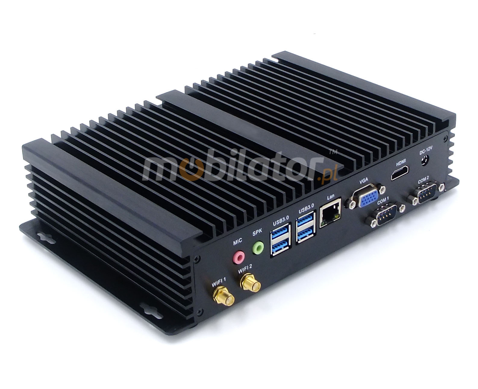 Zintegrowana karta sieciowa Intel RTL8186/8111/8112 Gigabit NIC oraz moduł Wi-Fi umożliwiają podłączenie urządzenia do sieci. Komputer wyposażony jest w: jedno złącze LAN, cztery porty USB 3.0, trzy USB 2.0, jeden port VGA, jedno wyjście HDMI, dwa porty COM(RS232), po jednym wyjściu na mikrofon i głośnik oraz złącza wbudowane na płycie głównej: jeden złącze SATA i jedno złącze mSATA.