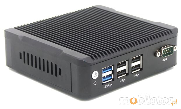 MiniPC przemysłowe z serii  MiniPC HyBOX 07PMF-N3160-1C oparte są na wydajnych cztero-rdzeniowych procesorach oraz wysokiej jakości podzespołach. Mini komputery zamknięte są w niewielkich przemysłowych obudowach, które doskonale odprowadzają ciepło z wnętrz urządzeń. Szeroki wybór modeli HyBOX oraz możliwość zmiany konfiguracji, pozwalają na optymalny dobór mini komputera do aplikacji multimedialnych i przemysłowych. Największe zalety Przemysłowy Komputer Fanless MiniPC RS232 USB 3.0 COM LAN RJ-45 HDMI VGA Mini Komputertych urządzeń to niewielkie rozmiary, wydajność oraz energooszczędność. Dodatkowa para kątowników przy spodzie obudowy zwiększa możliwości montażu w wszelkiego rodzaju miejscach i pozycjach. Oferowany model mini PC został selektywnie dobrany i skonfigurowany specjalnie do wymagań systemów Digital Signage, automatów do gier, automatów rozrywkowych, kiosków informacyjnych oraz systemów automatyki przemysłowej.