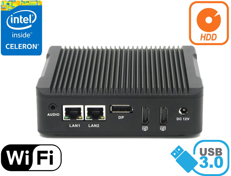 Przemysłowy Komputer Fanless MiniPC RS232 USB 3.0 COM LAN RJ-45 HDMI VGA Mini Komputer