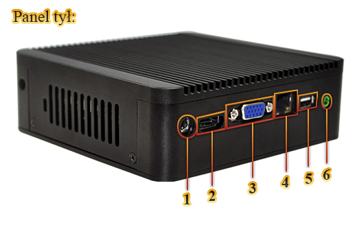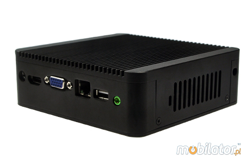 Zintegrowana karta sieciowa - Realtek RTL8111E 10/100/1000 oraz moduł WiFi umożliwiaja podłączenie urządzenia do sieci. Komputer wyposażony jest w: jedno złącze LAN, jeden port COM(RS232), jeden port HDMI, jedno wyjście VGA, trzy porty USB 2.0, jedno wejście Audio, jedno wejście mikrofonowe oraz złącza/konektory.