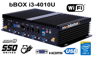 Niewielkich wymiarów komputery przemysłowe przodują w środowiskach, w których dominują kurz, brud i wilgoć. Są idealne do zastosowań wymagających cichej pracy. Małe i niezawodne MiniPC korzystają z technologii heat-pipe i lamel z aluminium dla pasywnego chłodzenia. Wytrzymały mini Komputer Przemysłowy bBOX i3-4010U to urządzenie przeznaczone do wszelkich zastosowań przemysłowych i nie tylko, wymagających ciągłej pracy - 24 godziny, 7 dni w tygodniu.