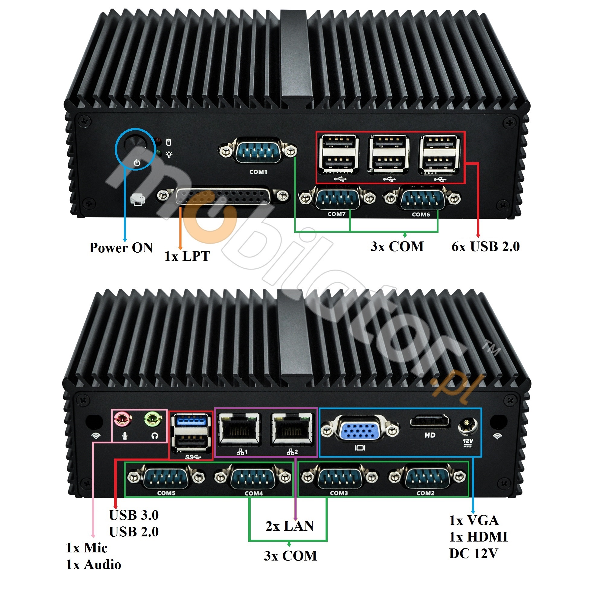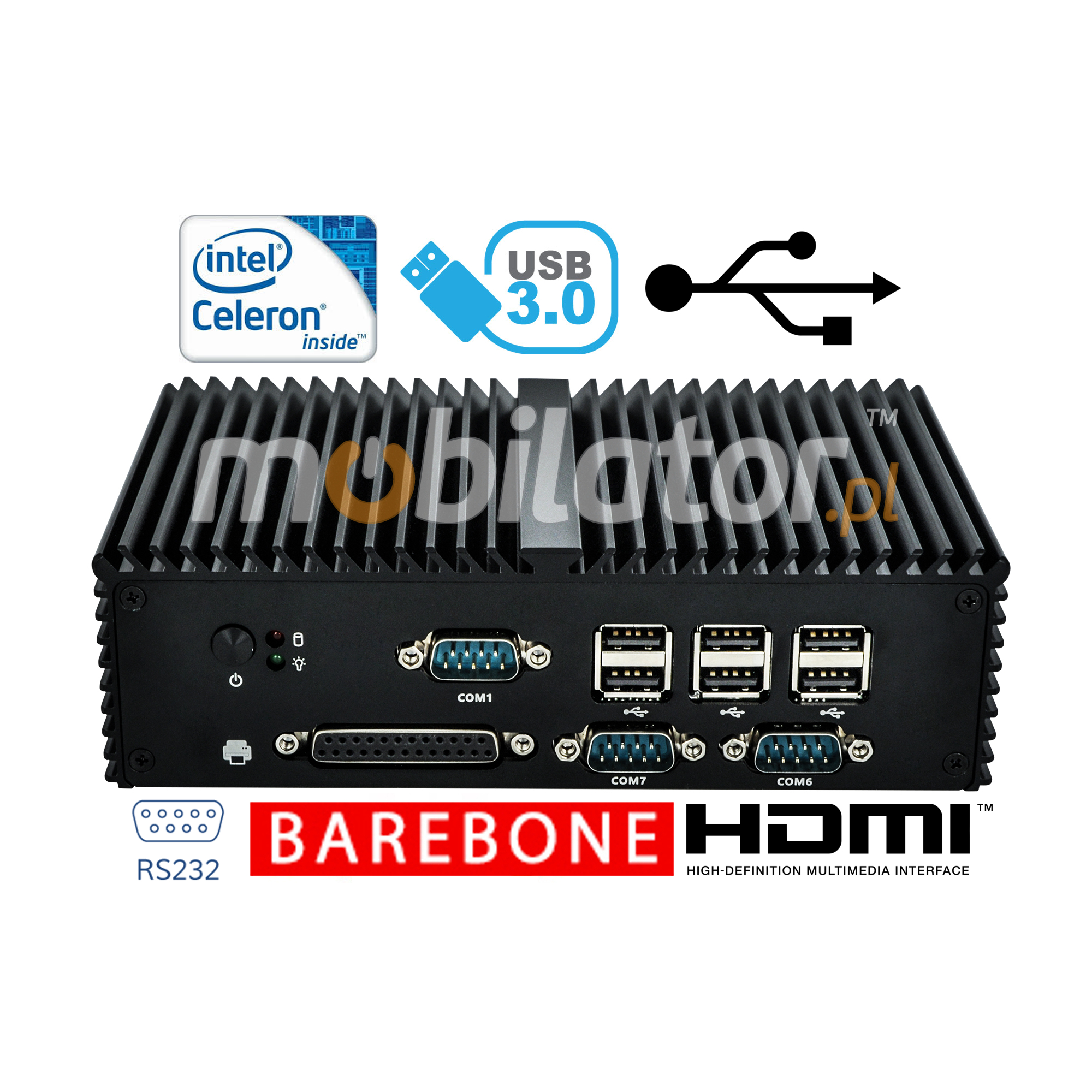 Niewielkich wymiarów komputery przemysłowe przodują w środowiskach, w których dominują kurz, brud i wilgoć. Są idealne do zastosowań wymagających cichej pracy. Małe i niezawodne MiniPC korzystają z technologii heat-pipe i lamel z aluminium dla pasywnego chłodzenia. Wytrzymały mini Komputer Przemysłowy mBOX-Q190X to urządzenie przeznaczone do wszelkich zastosowań przemysłowych i nie tylko, wymagających ciągłej pracy - 24 godziny, 7 dni w tygodniu.