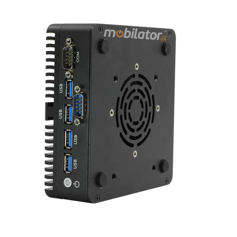 W przemysłowym Mini PC zastosowano sprawdzony system chłodzenia, oparty wyłącznie na elementach stałych, głównie radiatorach. W systemie tym wykorzystuje się zjawisko oddawania przez metale energii cieplnej do otoczenia – nie występują tu dodatkowe elementy ruchome w postaci np. wentylatorów. Takie rozwiązanie zapewnia bezgłośną pracę, mniejszą awaryjność oraz większą ochronę przed kurzem i innymi zabrudzeniami przy jednoczesnym zmniejszeniu ilości pobieranej energii.
