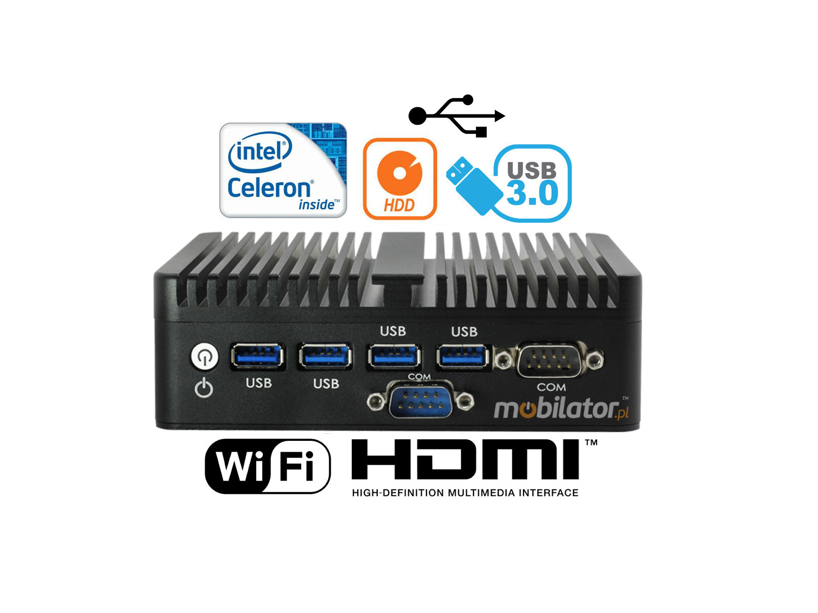 W przemysłowym mini komputerze yBOX-X30 zastosowano wydajny i energooszczędny procesor Intel Celeron 2955U. W jego wnętrzu znajdują się cztery współdziałające rdzenie umożliwiające bardziej efektywne przetwarzanie wielu zadań jednocześnie. Współużytkowana pamięć cache, w której wykorzystano wielopoziomową hierarchię, jest dynamicznie przydzielana dla każdego rdzenia procesora w zależności od obciążenia. Doprowadza to do zmniejszenia średniego czasu dostępu do pamięci głównej. Zaimplementowana technologia wirtualizacji Intel® (VT-x) sprawia, że jedna platforma sprzętowa działa jak wiele „wirtualnych" platform. Zapewnia większe możliwości zarządzania dzięki ograniczeniu przestojów i utrzymywaniu wysokiej wydajności przez podział procesów obliczeniowych na odrębne partycje.
