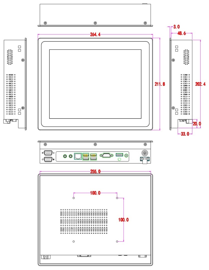1x LAN | 4x USB | 1x VGA | 1x EAR 2x RS232 | 1x HDMI | DC 12V |