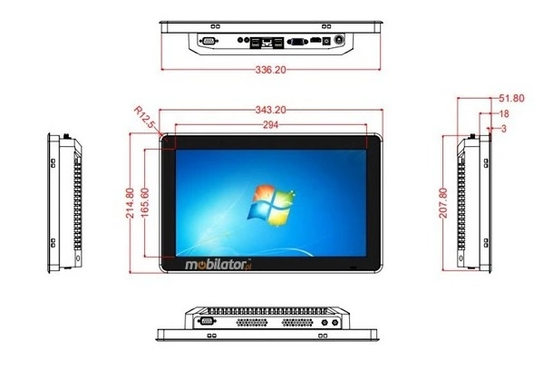 BiBox 133-I58 to panel komputerowy ma wymiary 343.20 x 214.80 x 51.80 mm. Jego kompaktowa, płaska obudowa została zaprojektowana tak, aby idealnie pasować do szaf sterowniczych i ograniczonych przestrzeni przemysłowych. Urządzenie spakowane jest w kartonach zawierających po dwa panele PC. Całkowita waga brutto (G.W.) jednej takiej paczki wynosi około 9KG. Wśród dołączonych akcesoriów dla tych dwóch urządzeń znajdują się zasilacze (power adapter) oraz anteny Wi-Fi.