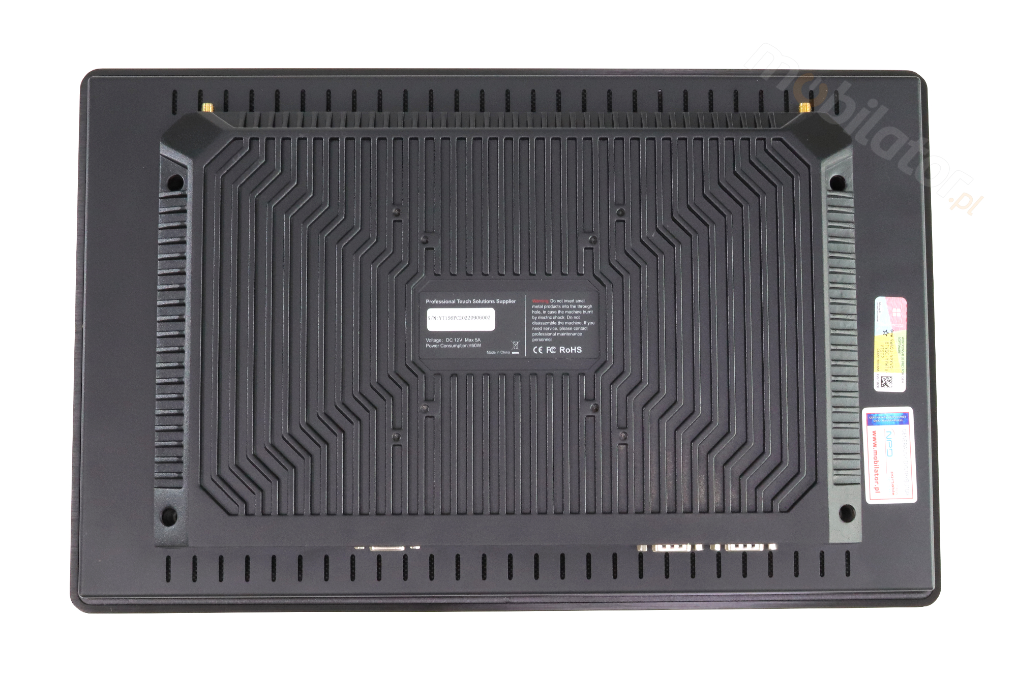 Panel PC posiada dobrej jakości obudowę wykonaną z metalu. Jest ona ważnym elementem systemu chłodzenia dzięki specjalnie zaprojektowanym wycięciom ułatwiającym obieg powietrza wewnątrz obudowy. Całościowy design urządzenia nastawiony jest na prostotę i funkcjonalność cenione wśród profesjonalistów, jako akcesorium można panel wyposażyć w chłodzenie pasywne.