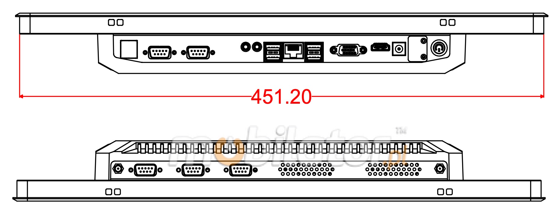 Wytrzymały panel PC na stanowiska produkcyjne BiBox 185-I510 ma wymiary 458.2 × 279.2 × 52 mm i został zamknięty w smukłej, kompaktowej obudowie, idealnie dopasowanej do szaf sterowniczych oraz ograniczonych przestrzeni przemysłowych.
