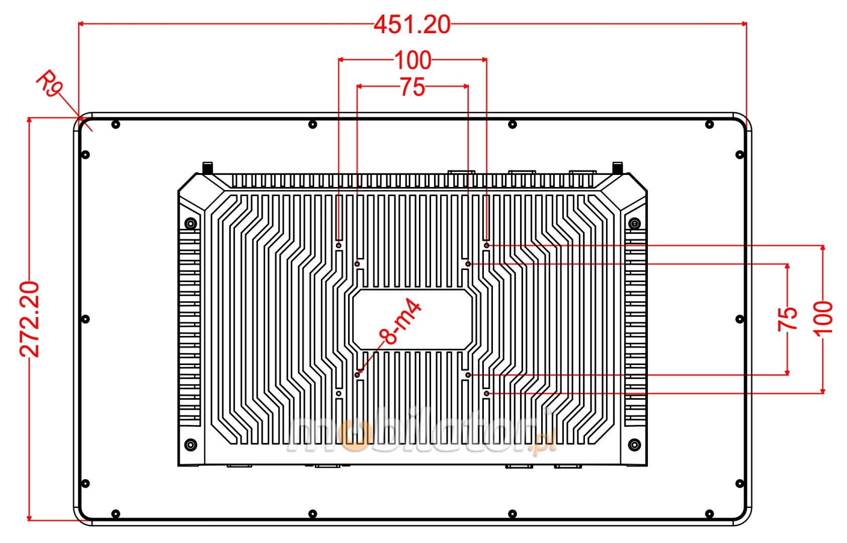 Wytrzymały panel PC na stanowiska produkcyjne BiBox 185-I58 ma wymiary 458.2 × 279.2 × 52 mm i został zamknięty w smukłej, kompaktowej obudowie, idealnie dopasowanej do szaf sterowniczych oraz ograniczonych przestrzeni przemysłowych.