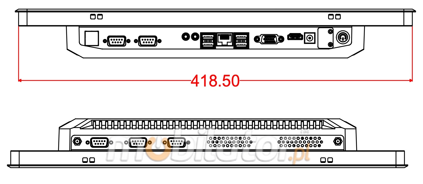 RS485 zamiast 1x RS232* (opcjonalnie) RS422 zamiast 1x RS232* (opcjonalnie) 4 dodatkowe porty RS232 (górna ścianka)* (opcjonalnie) Zasilanie 9-36V* (opcjonalnie) |