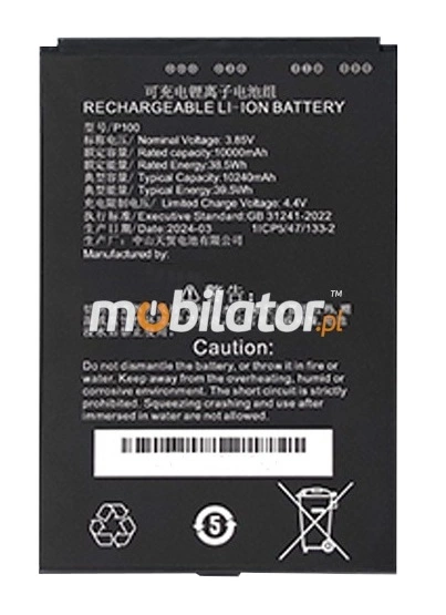 Chainway P100 - Wyjmowana bateria główna o pojemności 10000 mAh z miernikiem, obsługuje szybkie ładowanie