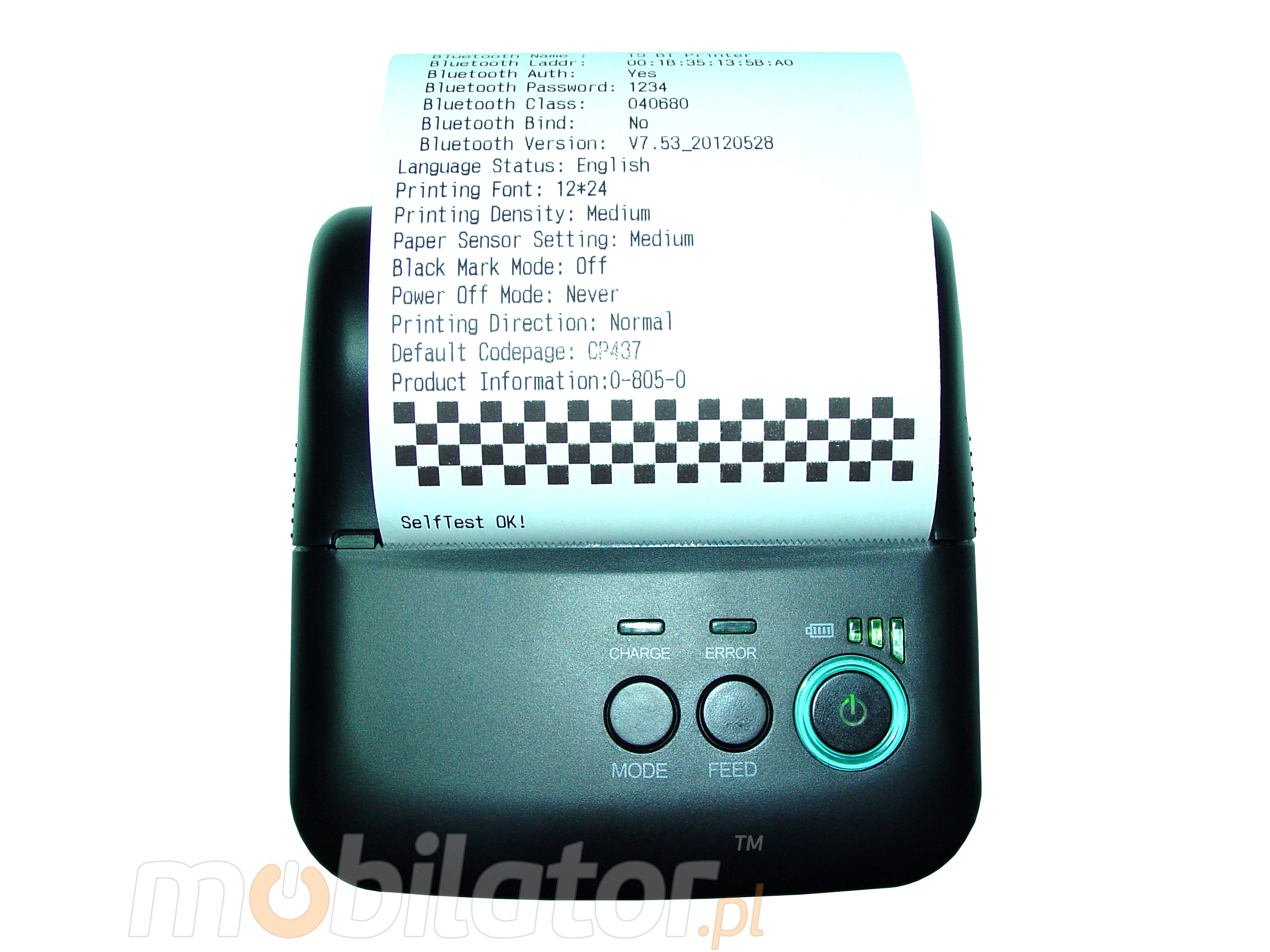 Drukarka termiczna - MOBIPRINT MP-T9 dziêki modu³owi Bluetooth (który zapewnia poprawn± komunikacjê) jest kompatybilna z urz±dzeniami mobilnymi, kolektorami danych oraz komputerami pracuj±cymi pod ró¿nymi systemami operacyjnymi (patrz: tekst "Komunikacja" - poni¿ej).