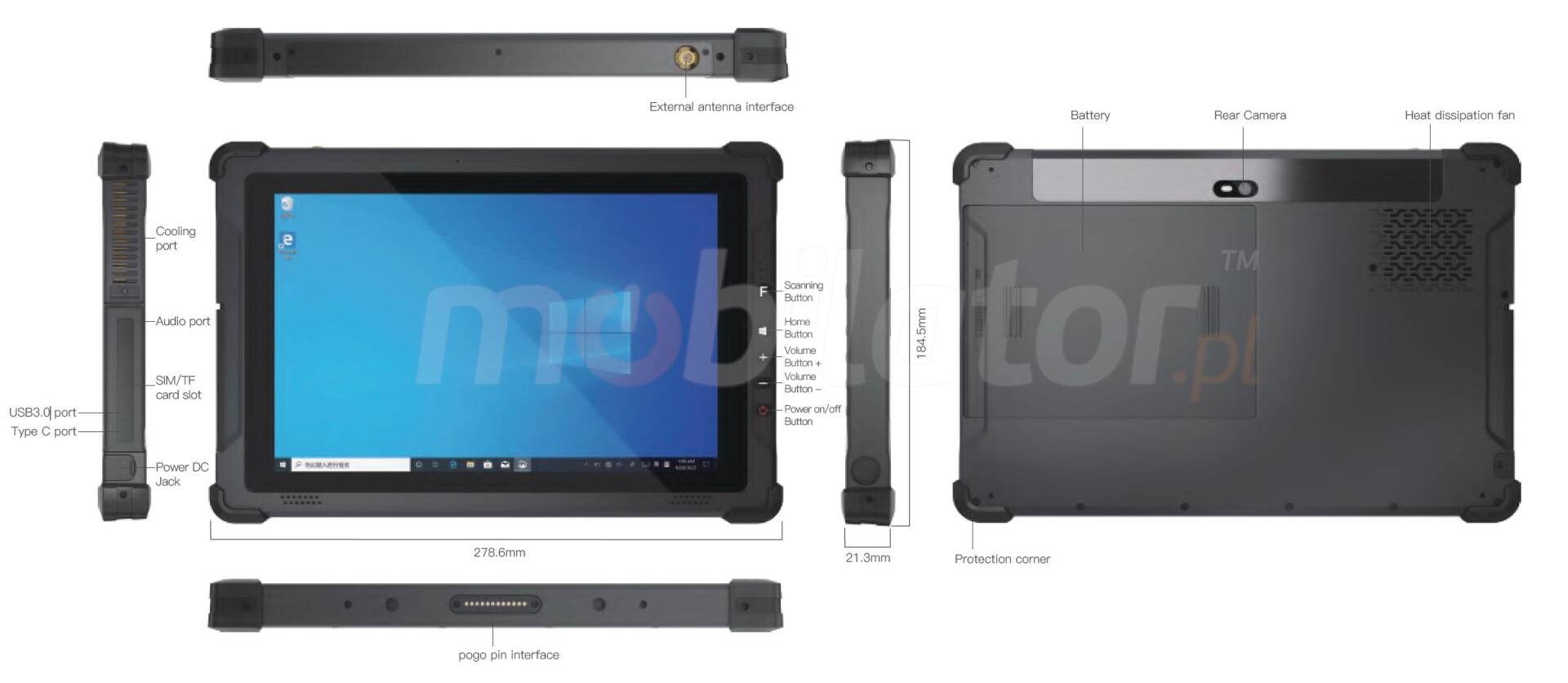 Tablet przemysłowy Emdoor I12U został stworzony z myślą o odporności i wygodzie. Smukła i wytrzymała obudowa o grubości zaledwie 21.3mm oraz stylowy design sprawią, że tablet będzie bardzo dobrze sprawdzał się w warunkach przemysłowych i nie tylko. Unikatowy rozmiar został starannie przemyślany, aby urządzenie było bardziej poręczne i ergonomiczne. Antypoślizgowa obudowa sprawia, że bezpiecznie i pewnie będziesz go trzymał w dłoni, a gumowe narożniki dodatkowo zabezpieczą urządzenie przed możliwymi uszkodzeniami w wyniku upadków.