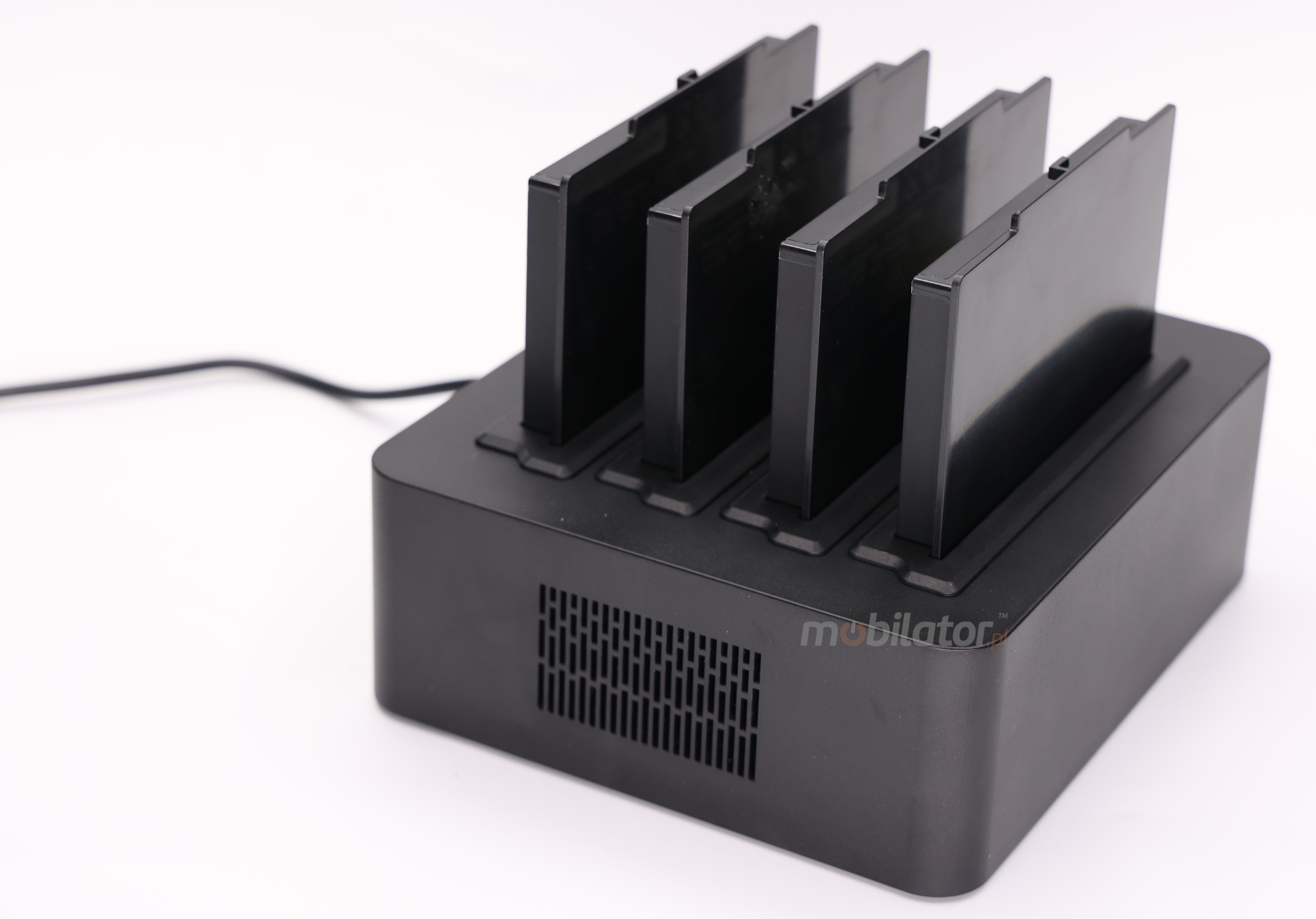 Stacja dokująca firmy Emdoor pozwala na wygodne i pewne ładowanie aż czterech akumulatorów urządzenia.