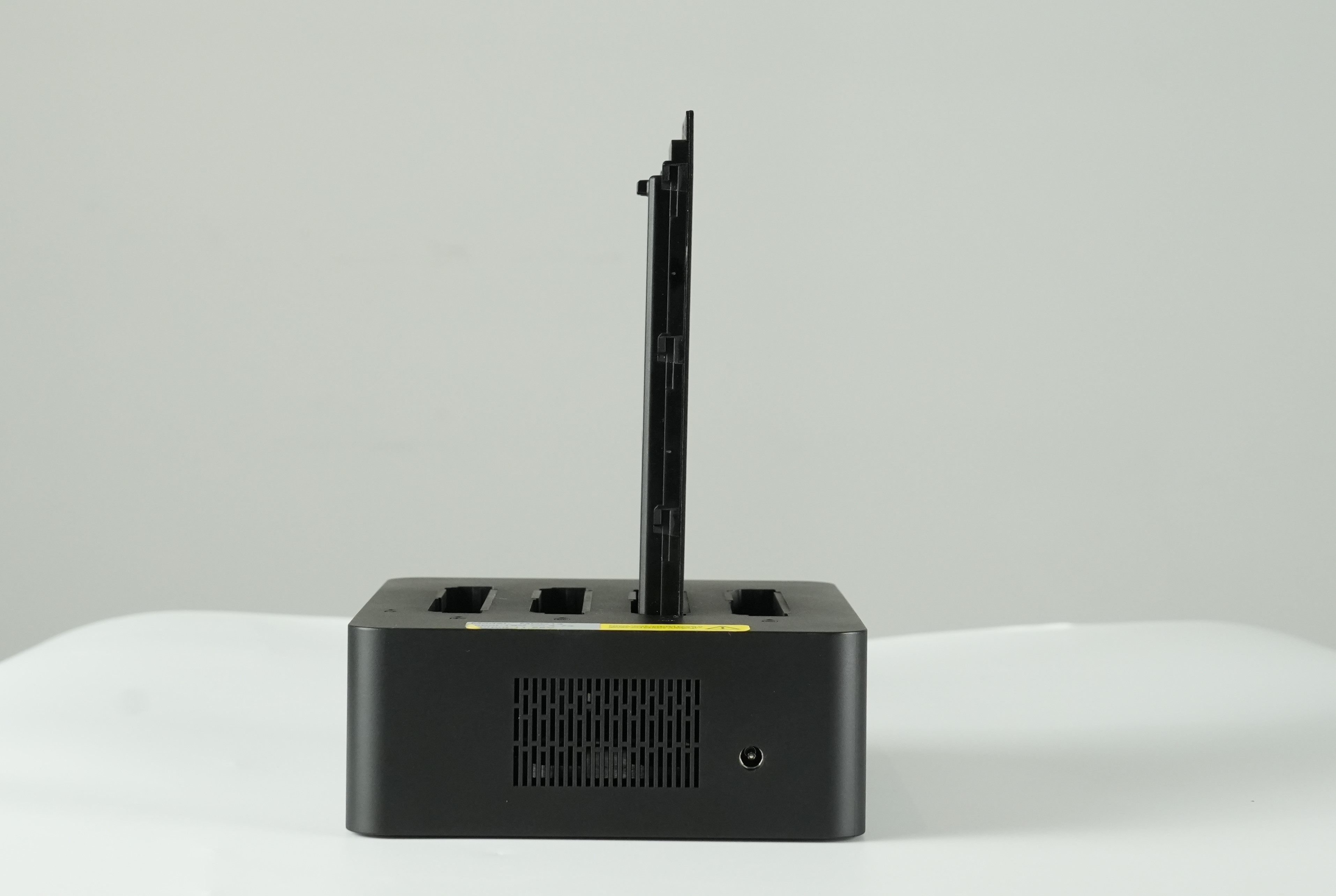 Stacja dokująca firmy Emdoor pozwala na wygodne i pewne ładowanie aż czterech akumulatorów urządzenia jednocześnie (w tym samym czasie).