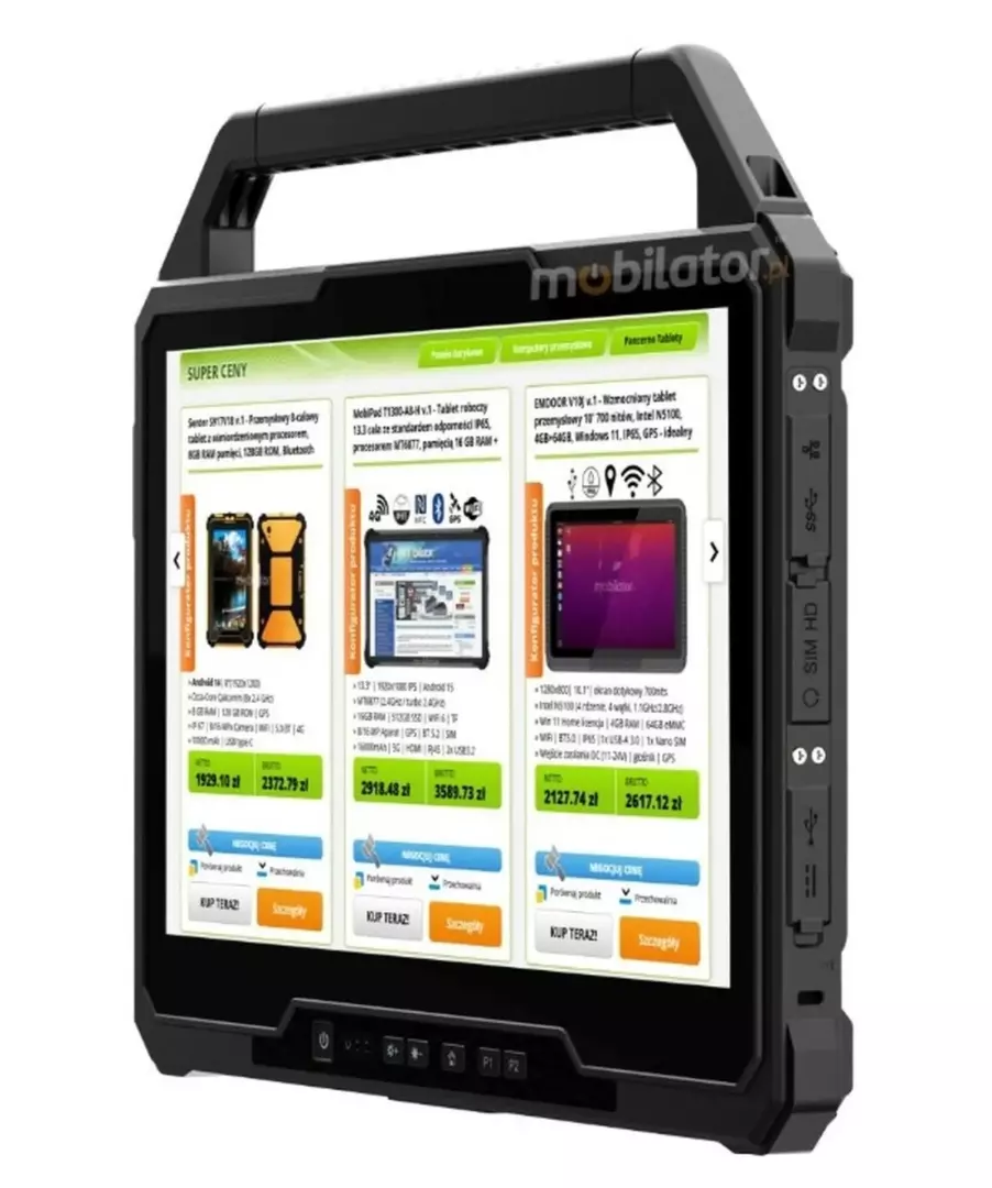 Introducing the MobiPad RT-UF1330DS tablet, a powerful work tool with a large 13.3-inch screen and 500 nits of brightness, ensuring WMS system readability even in bright warehouse lighting. Its robust 23mm thick housing provides resistance to dust and mechanical damage. Weighing 2,150 kg, the device is ideal as a permanent on-board terminal on a forklift, providing stable data access. The 1920x1080 resolution allows for clear display of a wealth of information, eliminating picking errors and speeding up inventory verification. You'll find complete information about this device at the link below: LINK