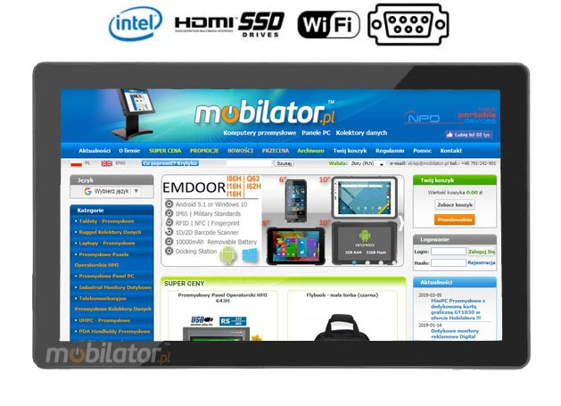PC Panel is widely used primarily in the commercial industry, for example for controlling the sales system, displaying product information on monitors or advertising on large screens. With the VESA holder in the housing there are many possibilities for its assembly, eg in stores (at the cash register) in factory halls, in a car delivering products, etc. It will certainly be used in all types of retail chains.