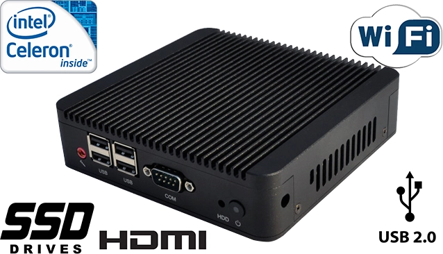 Using the latest technology Digital Engine (industrial fanless MiniPC) is designed for continuous multitasking operating with low power consumption. An important advantage is the effective combination of small size with considerable opportunities through the use of Intel's processor family, Intel chipset and DDR3 memory. Integrated Intel HD Graphics video and audio Realtek ALC662 allow you to play a wide range of applications and media files (video, audio) - in Full HD quality. Disks offer free space 16GB/32GB/64GB/128GB SSD.