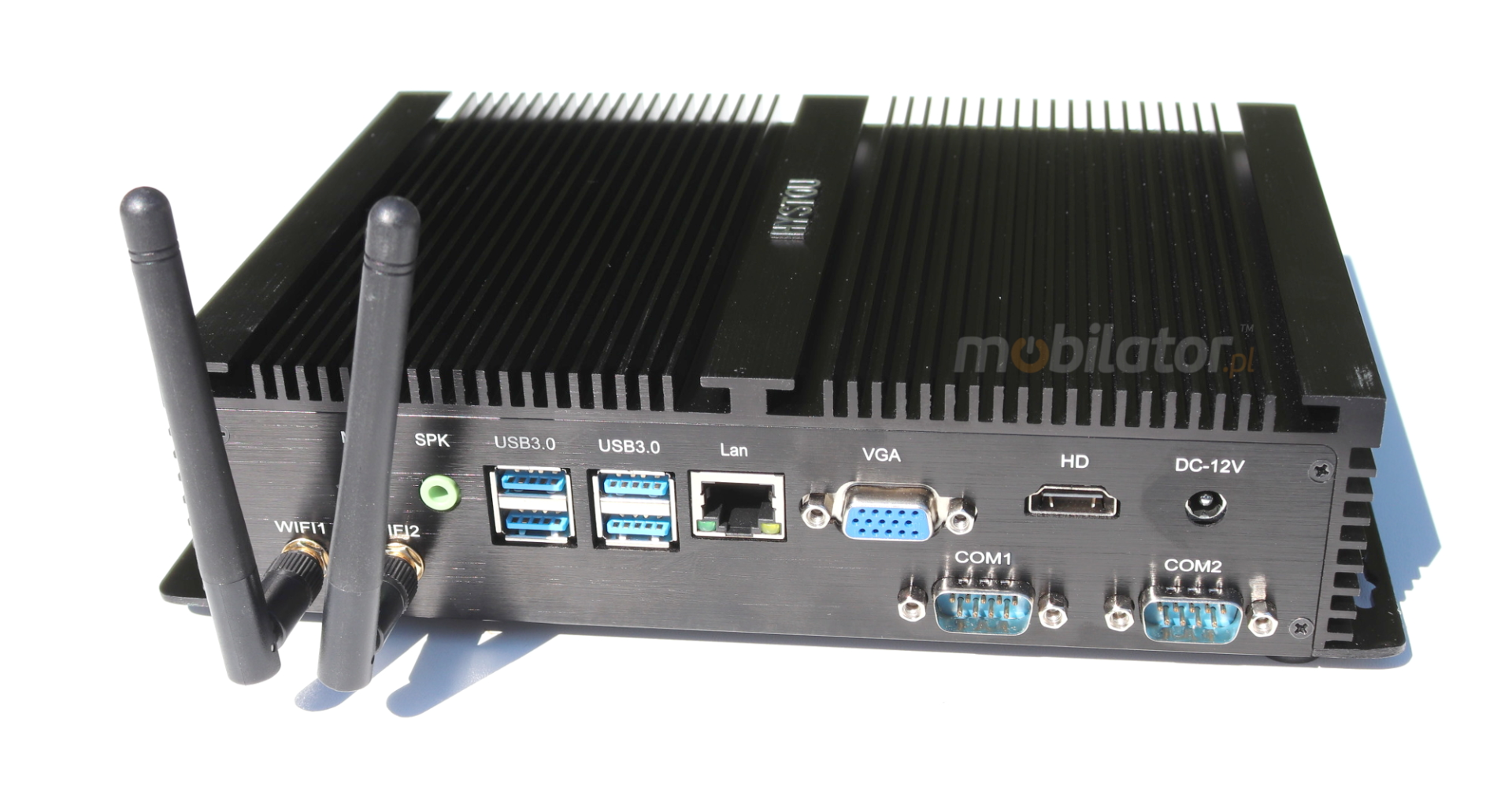 The industrial fanless MiniPC HyBOX 04PMF-i3-4010u uses a special method of cooling. This cooling takes place mainly by means of housing having a very large surface (longitudinal lamells, ribs) - for heat dissipation. Fan used inside the computer is designed to rapidly drain hot air from the CPU, allowing MiniPC to reach more efficiently and faster cooling.