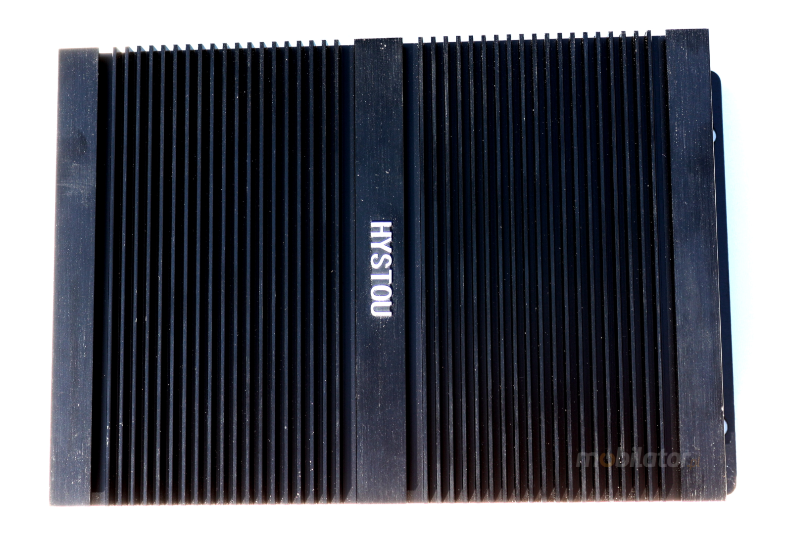 The industrial fanless MiniPC HyBOX 04PMF-i7-5550u uses a special method of cooling. This cooling takes place mainly by means of housing having a very large surface (longitudinal lamells, ribs) - for heat dissipation. Fan used inside the computer is designed to rapidly drain hot air from the CPU, allowing MiniPC to reach more efficiently and faster cooling.