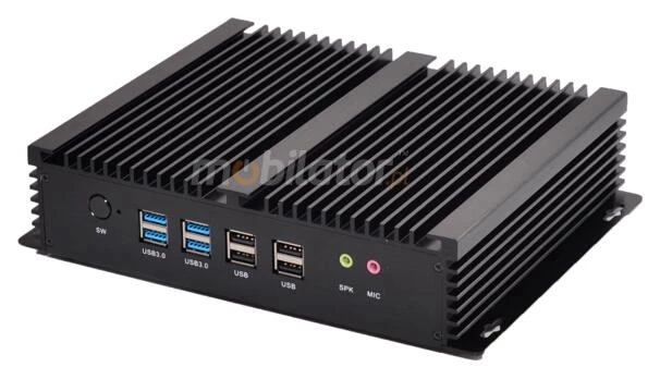 The industrial fanless MiniPC HyBOX 0B4PMF-i3-4010u uses a special method of cooling. This cooling takes place mainly by means of housing having a very large surface (longitudinal lamells, ribs) - for heat dissipation. Fan used inside the computer is designed to rapidly drain hot air from the CPU, allowing MiniPC to reach more efficiently and faster cooling.