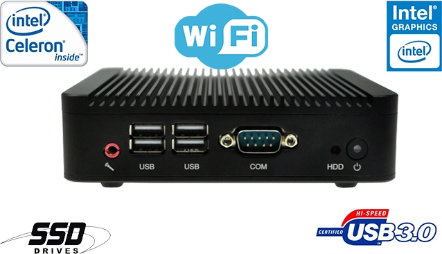 Using the latest technology Digital Engine (industrial fanless MiniPC) is designed for continuous multitasking operating with low power consumption. An important advantage is the effective combination of small size with considerable opportunities through the use of Intel's processor family, Intel chipset and DDR3 memory. Integrated Intel HD Graphics video and audio Realtek ALC662 allow you to play a wide range of applications and media files (video, audio) - in Full HD quality. Disks offer free space 16GB/32GB/64GB/128GB SSD.