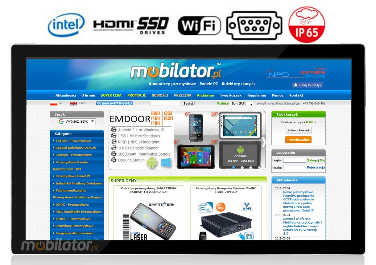 Industrial PC panels are integrated devices consisting of a PC computer and a touch monitor. Due to their design, they can work even under severe conditions prevailing in industrial environments, such as high humidity, high dustiness, contact with water or very low or high temperatures. These panels are characterized by high efficiency and stability of operation in all conditions.