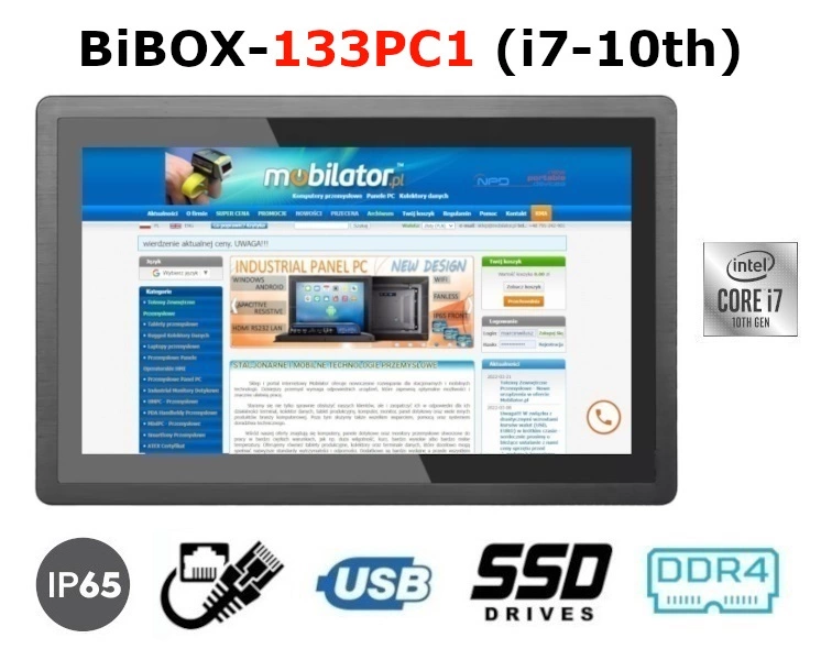 Industrial Panel PC BiBOX-133PC1 (i7-10th) is offered in several versions adapted to different needs. By clicking on the number of the hardware configuration you will be redirected to the product with the parameters given in the table below. In addition, it is possible to create a configuration that is currently unavailable on the customer's request.