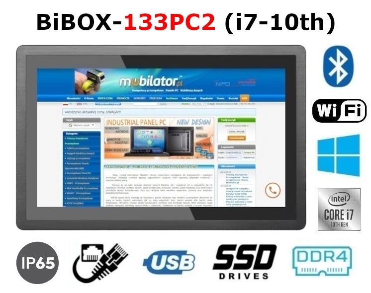 Industrial Panel PC BiBOX-133PC2 (i7-10th) is offered in several versions adapted to different needs. By clicking on the number of the hardware configuration you will be redirected to the product with the parameters given in the table below. In addition, it is possible to create a configuration that is currently unavailable on the customer's request.
