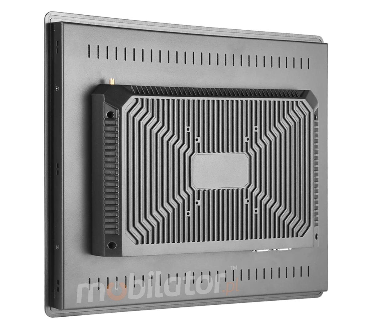 The panel PC has a good-quality metal casing. It is an important element of the cooling system thanks to specially designed cutouts that facilitate air circulation inside the housing. The overall design of the device is focused on simplicity and functionality, appreciated among professionals, as an accessory the panel can be equipped with passive cooling.