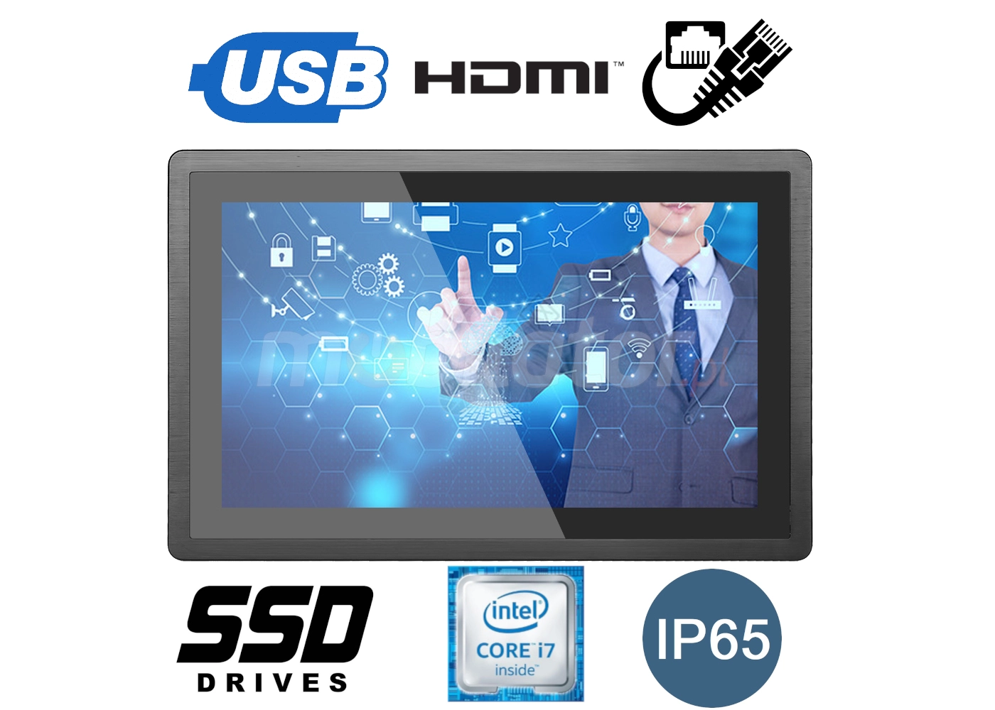 The industrial PC panel uses an efficient and energy-saving Intel Core i7-10th gen processor. In its interior there are four cooperating cores enabling more efficient processing of many tasks at the same time. Shared cache memory in which a multi-level hierarchy is used is dynamically allocated to each processor core depending on the load. This reduces the average access time to the main memory. Improved graphics card technology allows you to enjoy movies at full resolution and HD quality.