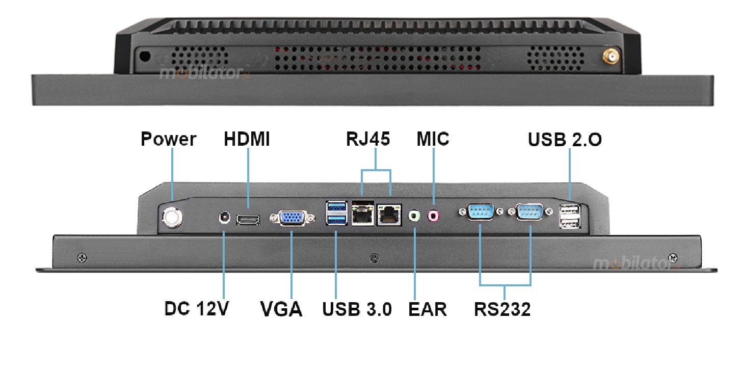 2xUSB 3.0 | 2xUSB 2.0 | 1xHDMI | 1xVGA 2xLAN | 1xEAR | 1xMIC 4xCOM *optional | DC 12V, 9-36V *optional 2xRS232 1xRS485 *optional(instead of 1xRS232) 1xRS422 *optional (instead of 1xRS232) |