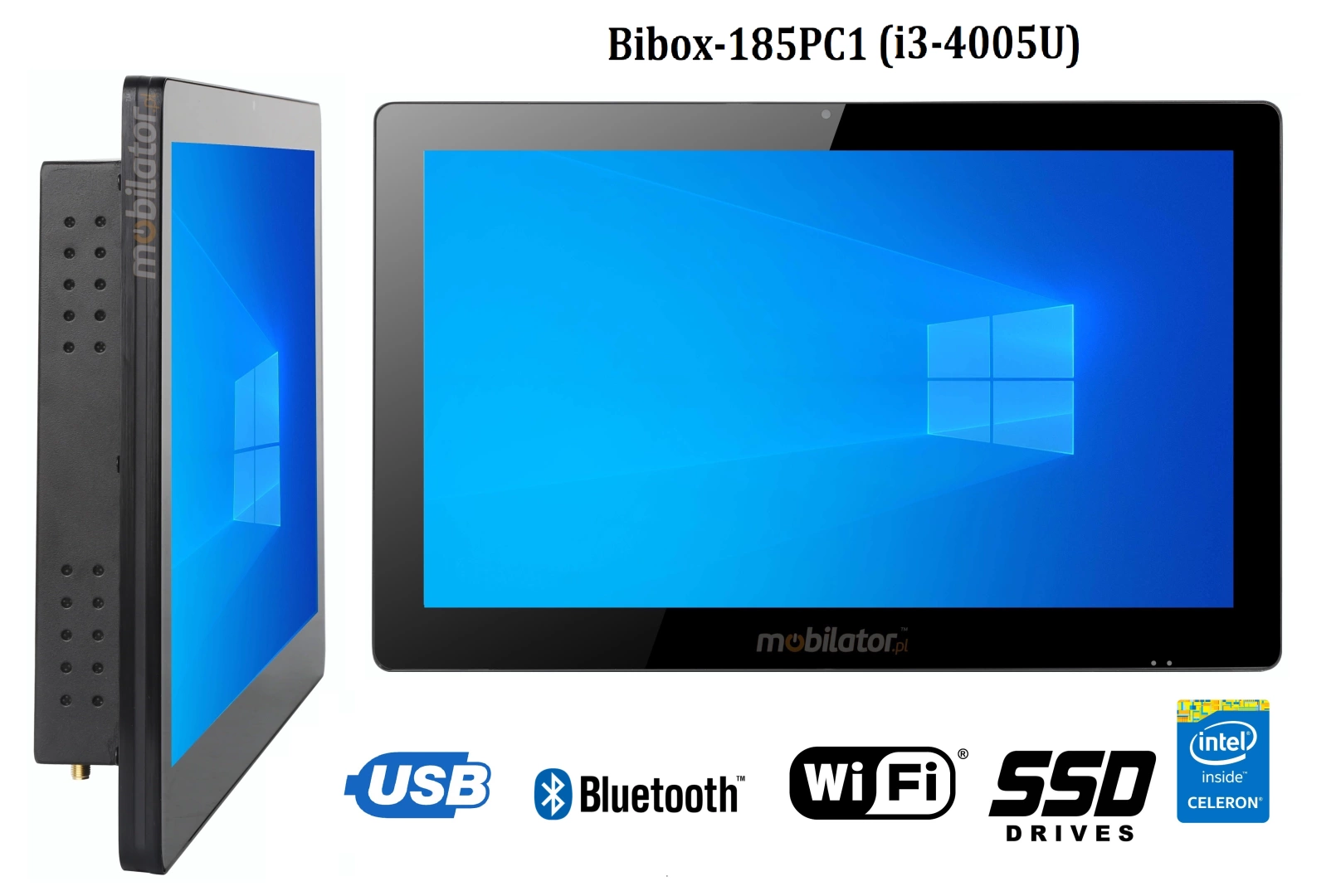 Amplified, metal industrial computer BiBOX-185PC1 has a water-resistant and scratch-proof 18.5" LED screen 1366x768 resolution offers good image quality, and high brightness in the 250 cd/m² range gives better color saturation and contrast and allows significantly improved visibility even in the case of incident The display of the resistive type provides the user with a clear image and ease of use by touch.
