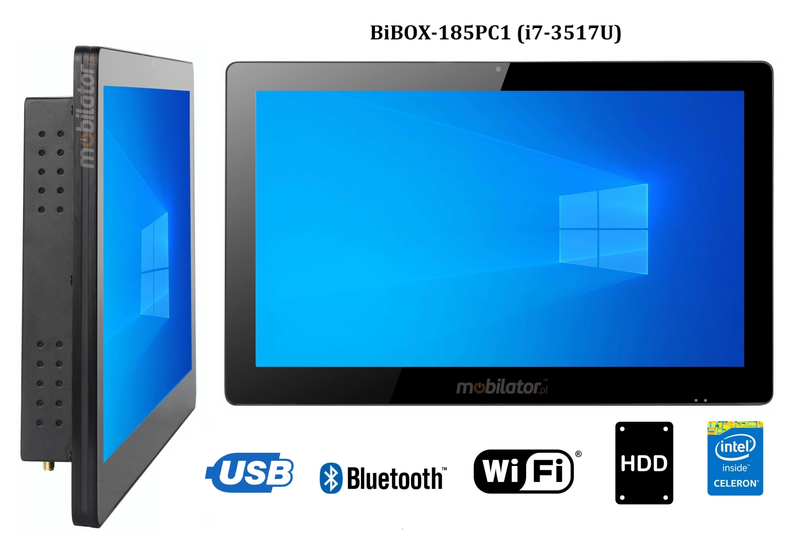 Amplified, metal industrial computer BiBOX-185PC1 has a water-resistant and scratch-proof 18.5" LED screen 1366x768 resolution offers good image quality, and high brightness in the 250 cd/m² range gives better color saturation and contrast and allows significantly improved visibility even in the case of incident The display of the resistive type provides the user with a clear image and ease of use by touch.