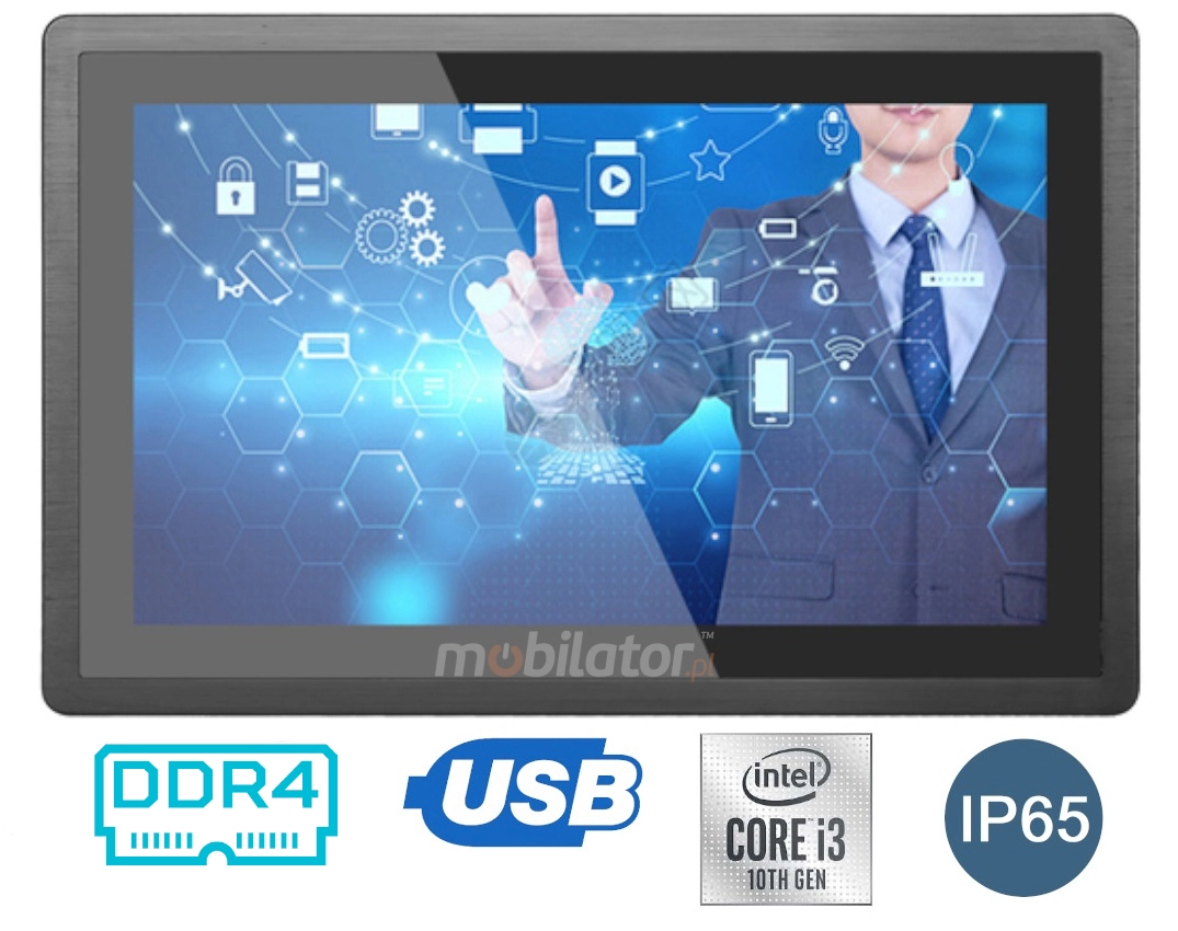 The industrial PC panel uses an efficient and energy-saving Intel Core i3 10110U. In its interior there are four cooperating cores enabling more efficient processing of many tasks at the same time. Shared cache memory in which a multi-level hierarchy is used is dynamically allocated to each processor core depending on the load. This reduces the average access time to the main memory. Improved graphics card technology allows you to enjoy movies at full resolution and HD quality.