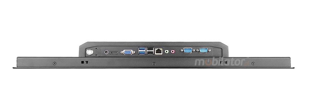 The panel PC has a good-quality metal casing. It is an important element of the cooling system thanks to specially designed cutouts that facilitate air circulation inside the housing. The overall design of the device is focused on simplicity and functionality, appreciated among professionals, as an accessory the panel can be equipped with passive cooling.