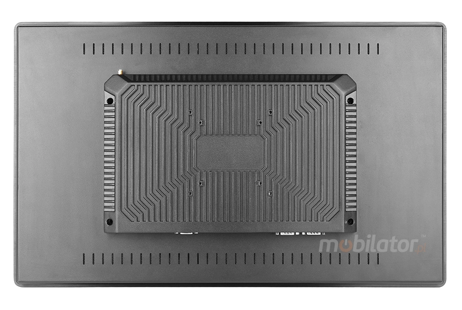The panel PC has a good-quality metal casing. It is an important element of the cooling system thanks to specially designed cutouts that facilitate air circulation inside the housing. The overall design of the device is focused on simplicity and functionality, appreciated among professionals, as an accessory the panel can be equipped with passive cooling.