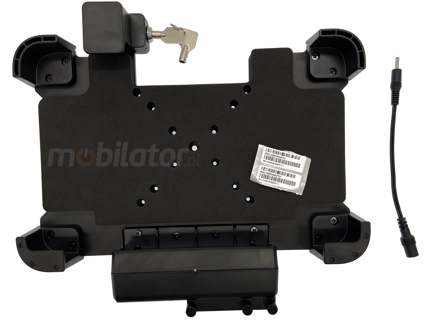 It is possible to use four different inputs/outputs in this holder: 1x RS232, 1x RJ-45 and 2x USB 2.0 which are working after plugging DC.