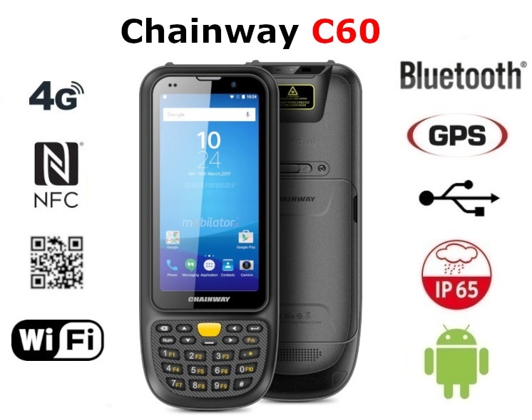 Chainway C60 is a modern, waterproof industrial smartphone designed for extreme applications. It has a specially designed, reinforced construction that meets the requirements of IP65, which confirms the protection of the device against dust and water.
