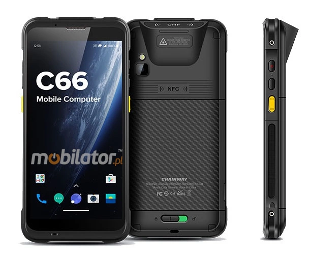 Chainway C66-V4 is a modern, waterproof industrial smartphone designed for extreme applications. It has a specially designed, reinforced construction that meets the requirements of IP65, which confirms the protection of the device against dust and water.