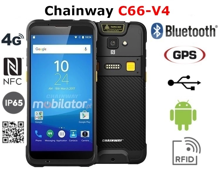 Chainway C66-V4 is a modern, waterproof industrial smartphone designed for extreme applications. It has a specially designed, reinforced construction that meets the requirements of IP65, which confirms the protection of the device against dust and water.