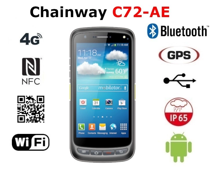 Chainway C72-AE is suitable for continuous operation in both low and high temperatures in the range of -20 ° C to 50 ° C. When the device is off, it can handle temperatures ranging from -40 ° C to 70 ° C. In addition, the rugged industrial smartphone performs well in rooms with increased humidity, ensuring proper operation even with 95% relative humidity.