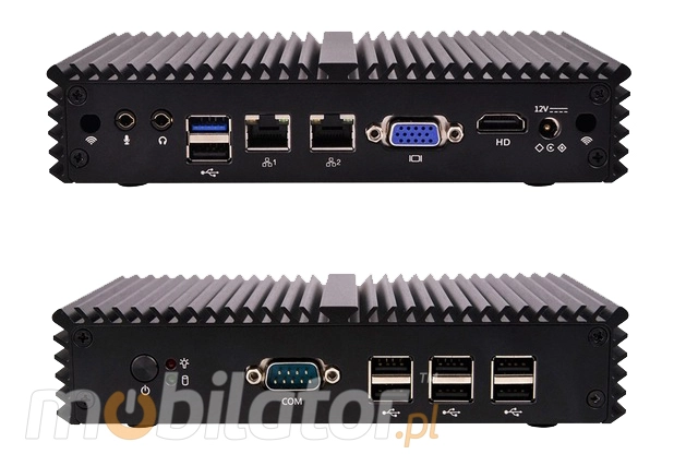 The industrial Mini PC uses a proven cooling system, based only on solid elements, mainly heat sinks. The system uses the phenomenon of metals passing thermal energy into the environment - there are no additional moving elements in the form of eg fans. This solution ensures noiseless operation, lower failure rate and greater protection against dust and other dirt while reducing the amount of energy consumed.