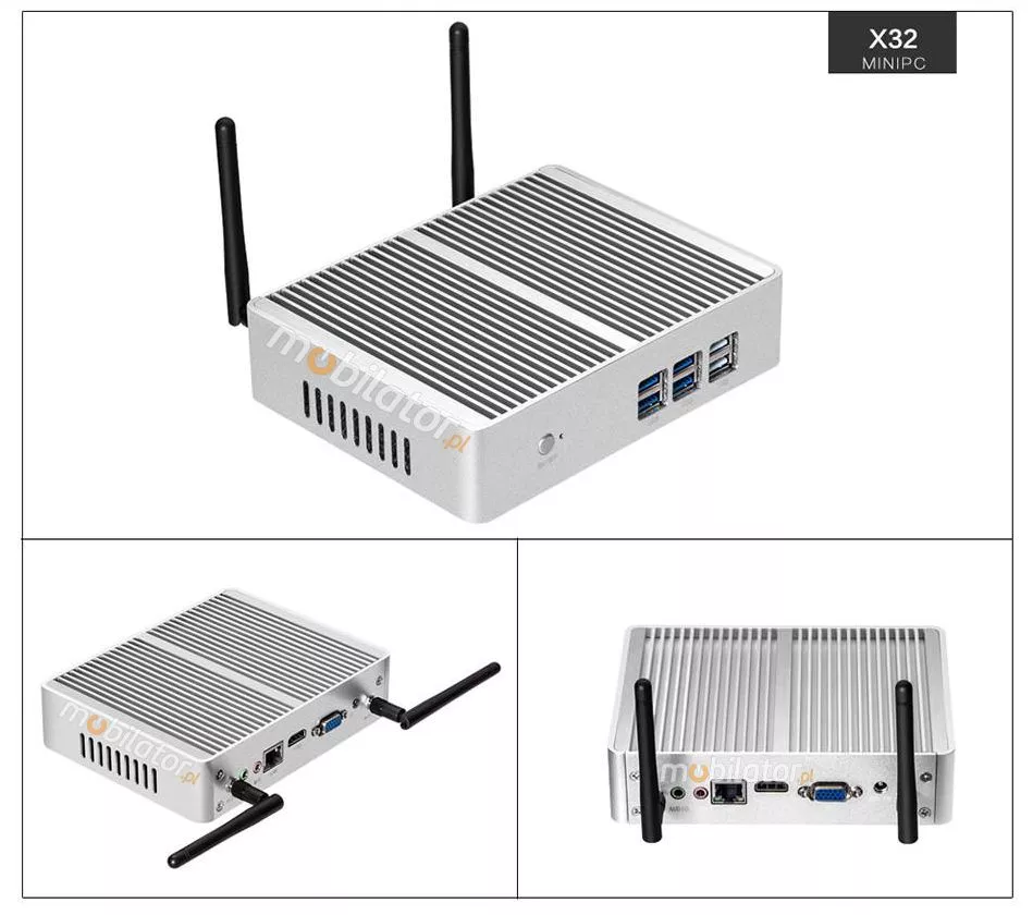 The passive cooling system used in the MiniPC yBOX-32X combined with the non-disk SSD make this computer very resistant to various types of mechanical injuries. An additional advantage of industrial computers is a solid construction made of high quality aluminum and specially designed in such a way that in addition to high efficiency in heat dissipation, it can also resist any external damage.