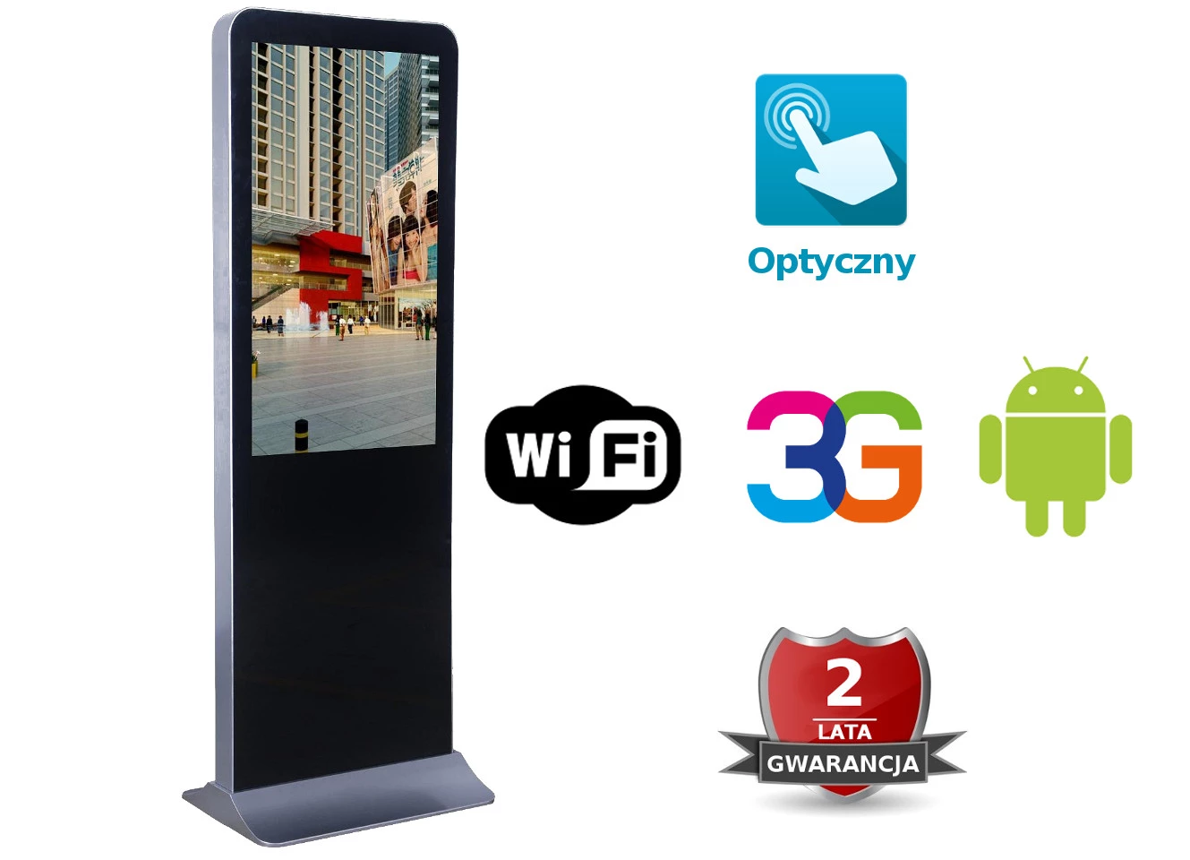 Digital Signage from this series can also be optionally also equipped with an infrared optical screen. Touch screens of this type do not require the screen to be covered by any special layer, instead, the LEDs emitting infrared light are mounted on the two edges of the screen, the bundles of which make up the net. It is then detected by sensors located on the remaining edges. The inclusion of some material in the display disrupts the transmission of infrared rays at a given location, allowing for a precise point of contact. Optical screens support multi touch and allow you to operate not only your finger, but also with a stylus, for example.