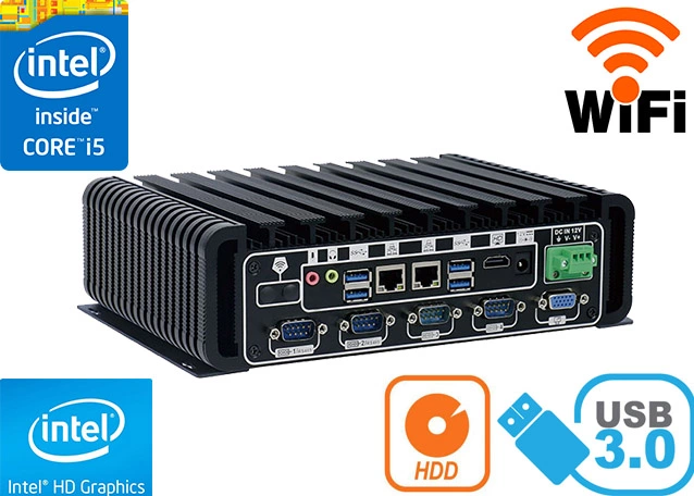 Integrated card - Intel i211AT 1000M Lan and WiFi module allow connection to the network. The computer is equipped with: two LAN ports, two HDMI ports, four USB 2.0 ports, four USB 3.0 ports, six COM (RS232) ports, one VGA output, one Audio input and one Mic output.