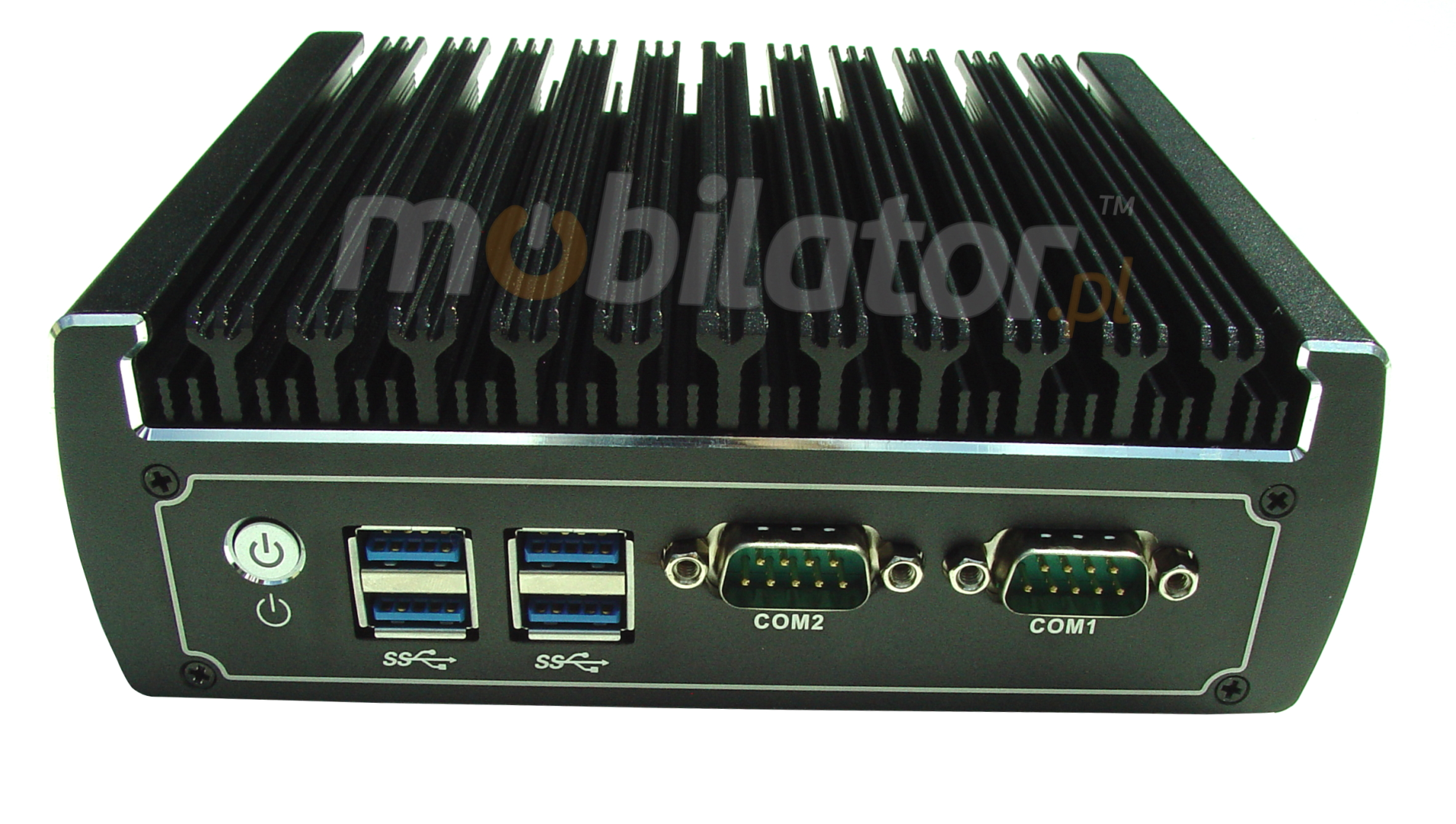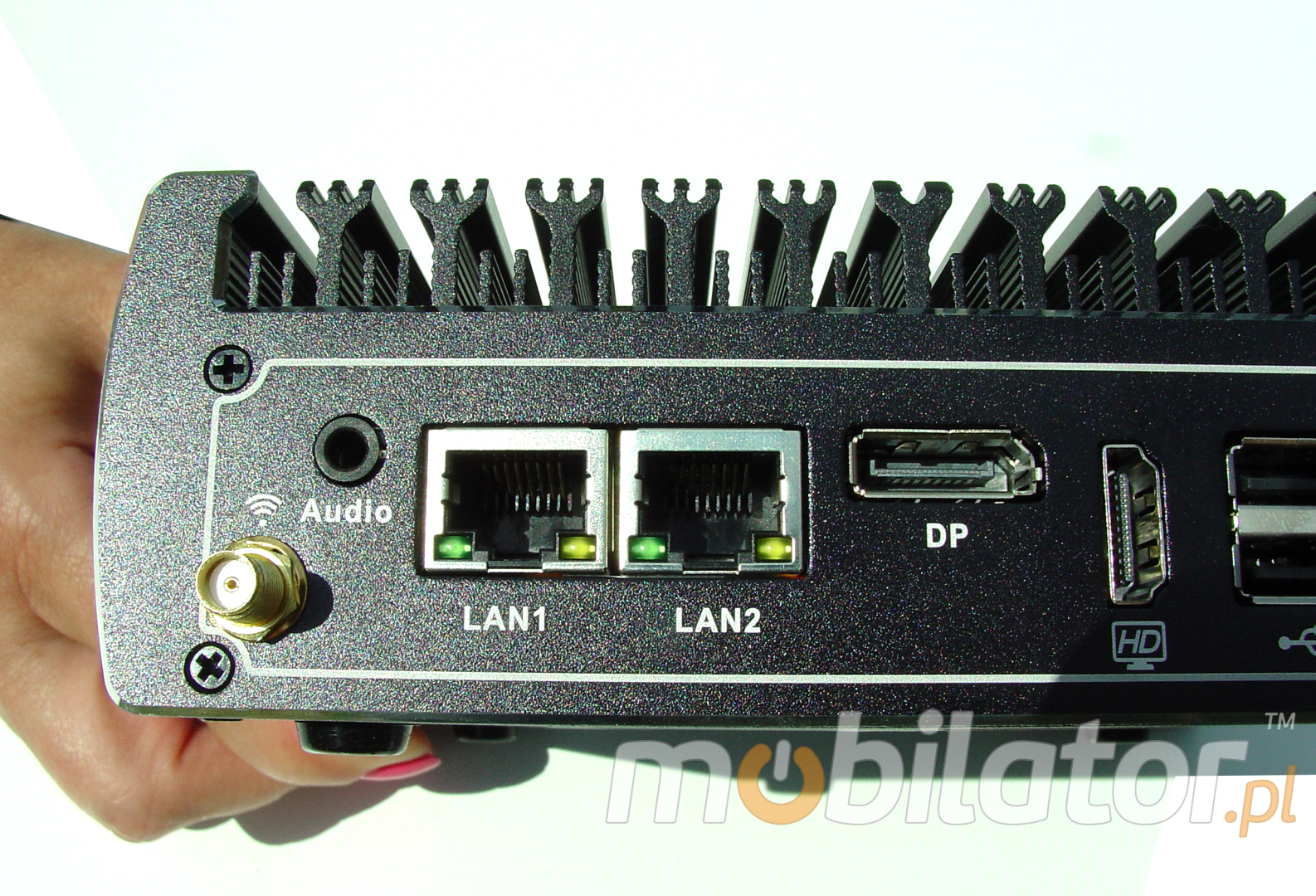 Integrated card - RTL8111E 10/100/1000M and 4G module allow connection to the network. The computer is equipped with: two LAN ports, one HDMI port, one DP port, two USB 2.0 ports, four USB 3.0 ports, two COM RS232 ports.